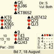 | Con | Dc | Res | Score | Ld | Pairs | Rd | Tbl | | 3 N | W | -4 | 200 | 8 | 06 - 05 | 2 | 6 |