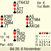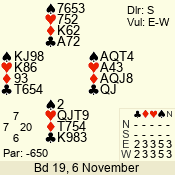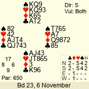 Con | Dc | Res | Score | Ld | Pairs | Rd | Tbl | 4  | S | +1 | 650 | A | 04 - 11 | 9 | 3 |