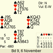 3 NT | W | +2 | -660 | 4 | 03 - 08 | 6 | 4 |