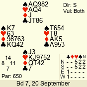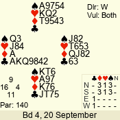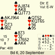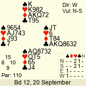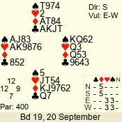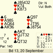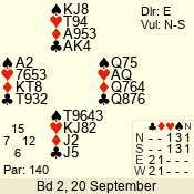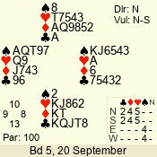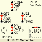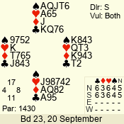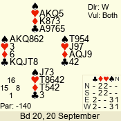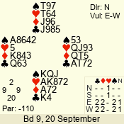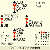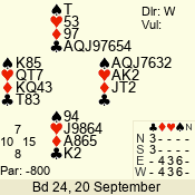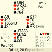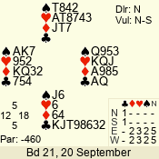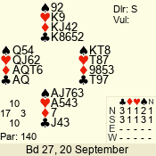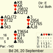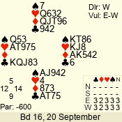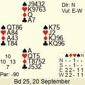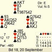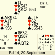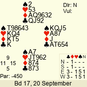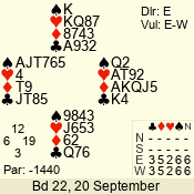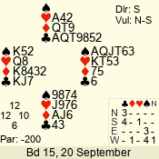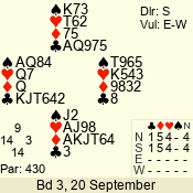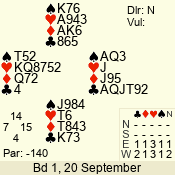 | 3 NT | E | +1 | -430 | 3 | 09 - 05 | 3 | 4 |