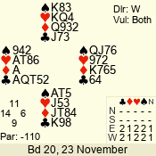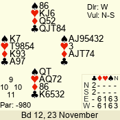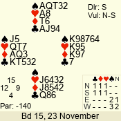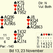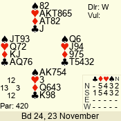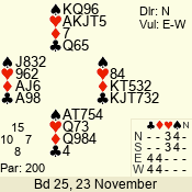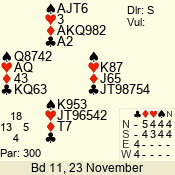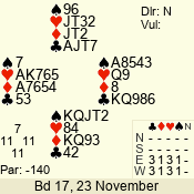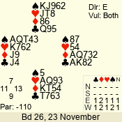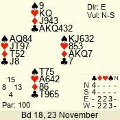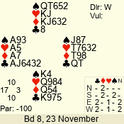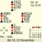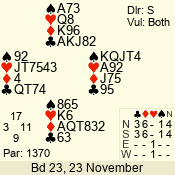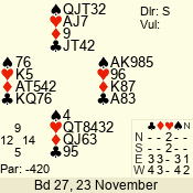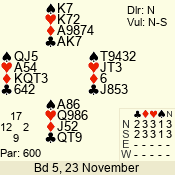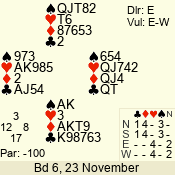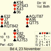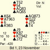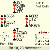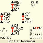 Con | Dc | Res | Score | Ld | Pairs | Rd | Tbl | 3 N | S | +1 | 430 | J | 01 - 03 | 6 | 1 |