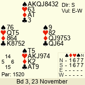 Con | Dc | Res | Score | Ld | Pairs | Rd | Tbl | 5  | S | +2 | 640 | T | 06 - 06 | 1 | 6 |