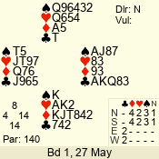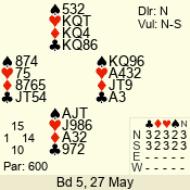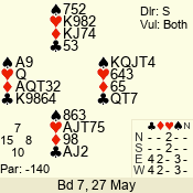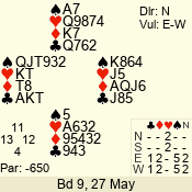 | Con | Dc | Res | Score | Ld | Pairs | Rd | Tbl |  | 3 N | N | +2 | 660 | 6  | 08 - 07 | 2 | 8 |