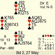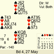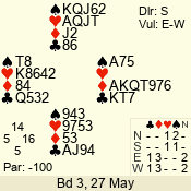 | Con | Dc | Res | Score | Ld | Pairs | Rd | Tbl |  | 1 N | W | -3 | 300 | 4  | 03 - 03 | 1 | 3 |