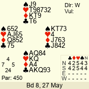 | Con | Dc | Res | Score | Ld | Pairs | Rd | Tbl |  4   | S | +1 | 450 | A  | 01 - 06 | 4 | 1 |