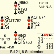 | Con | Dc | Res | Score | Ld | Pairs | Rd | Tbl | 4  | S | +1 | 450 | A | 06 - 04 | 3 | 6 |