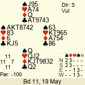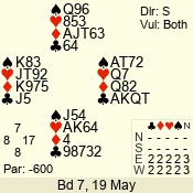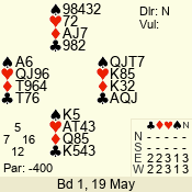 | 3 NT | S | +1 | 430 | 2 | 07 - 05 | 3 | 7 |