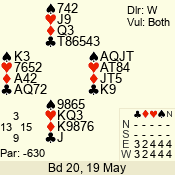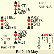 | 3 NT | E | +1 | -630 | 2 | 02 - 02 | 1 | 2 |