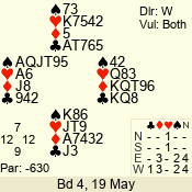 | 3 NT | W | +1 | -630 | 6 | 09 - 06 | 4 | 9 |