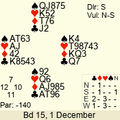 | 3 NT | S | +1 | 430 | 7 | 03 - 07 | 4 | 3 |