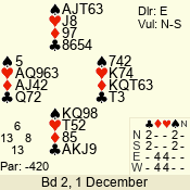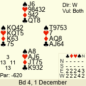 | Con | Dc | Res | Score | Ld | Pairs | Rd | Tbl | 4  | S | = | 420 | A | 03 - 03 | 1 | 3 |
