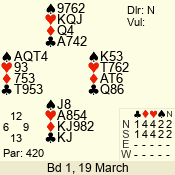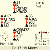 Con | Dc | Res | Score | Ld | Pairs | Rd | Tbl | 4  | E | = | -420 | 6 | 08 - 07 | 2 | 8 |