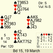 Con | Dc | Res | Score | Ld | Pairs | Rd | Tbl | 1 N | S | +1 | 120 | 2 | 05 - 07 | 7 | 5 |