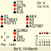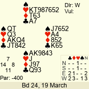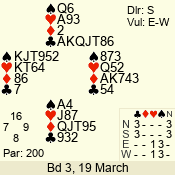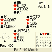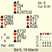 Con | Dc | Res | Score | Ld | Pairs | Rd | Tbl | 3 N | W | = | -400 | 9 | 02 - 06 | 5 | 2 |