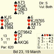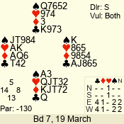 Con | Dc | Res | Score | Ld | Pairs | Rd | Tbl | 5  | S | +1 | 620 | 6 | 03 - 07 | 5 | 3 |