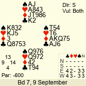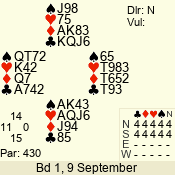 | 3 NT | S | +1 | 430 | 7 | 05 - 07 | 4 | 6 |