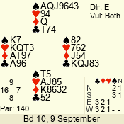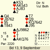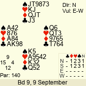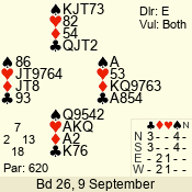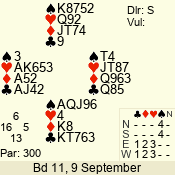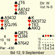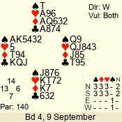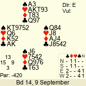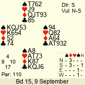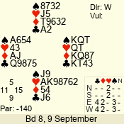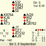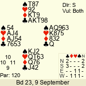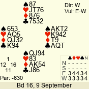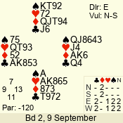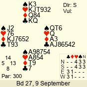 | 3 NT | W | +1 | -630 | J | 08 - 11 | 4 | 3 |
