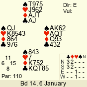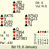 3 NT | S | +1 | 630 | 5 | 15 - 09 | 7 | 15 |