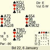 Con | Dc | Res | Score | Ld | Pairs | Rd | Tbl | 4  | E | +1 | -450 | A | 07 - 11 | 18 | 7 |