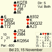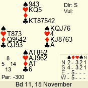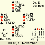 | Con | Dc | Res | Score | Ld | Pairs | Rd | Tbl |  | 3 N | N | +1 | 630 | 3  | 07 - 03 | 5 | 7 |