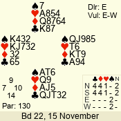 | Con | Dc | Res | Score | Ld | Pairs | Rd | Tbl |  2   | S | +2 | 130 | T  | 02 - 06 | 5 | 2 |