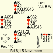 | Con | Dc | Res | Score | Ld | Pairs | Rd | Tbl |  3   | E | -3 | 300 | T  | 06 - 06 | 1 | 6 |