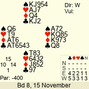 | Con | Dc | Res | Score | Ld | Pairs | Rd | Tbl |  | 3 N | N | +3 | 490 | 6  | 01 - 08 | 2 | 1 |