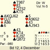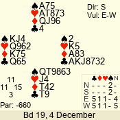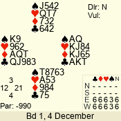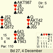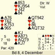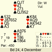 | Con | Dc | Res | Score | Ld | Pairs | Rd | Tbl | | 4 N | W | -4 | 400 | K | 07 - 04 | 8 | 5 |