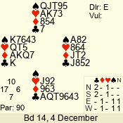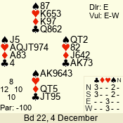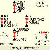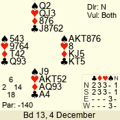| Con | Dc | Res | Score | Ld | Pairs | Rd | Tbl | | 3 N | E | -3 | 150 | 5 | 04 - 02 | 9 | 6 |