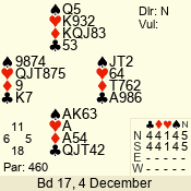 | Con | Dc | Res | Score | Ld | Pairs | Rd | Tbl | | 3 N | S | +2 | 460 | T | 10 - 02 | 4 | 3 |