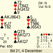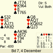 | Con | Dc | Res | Score | Ld | Pairs | Rd | Tbl | | 3 N | S | = | 600 | 2 | 11 - 01 | 7 | 2 |