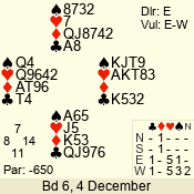 | Con | Dc | Res | Score | Ld | Pairs | Rd | Tbl | 4  | S | +1 | 650 | 4 | 09 - 07 | 5 | 6 |