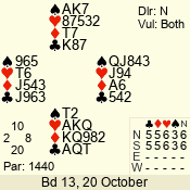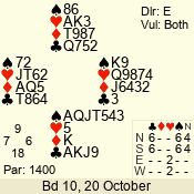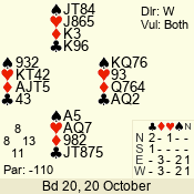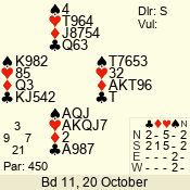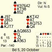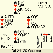 | 3 NT | W | +1 | -430 | J | 05 - 05 | 1 | 5 |