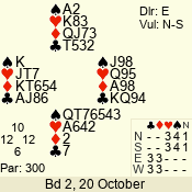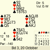 | 3 NT | S | +1 | 430 | 9 | 03 - 06 | 4 | 3 |