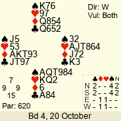 | 3 NT | W | +3 | -490 | K | 01 - 04 | 4 | 1 |