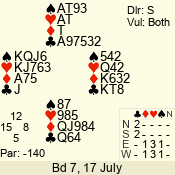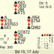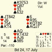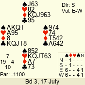 Con | Dc | Res | Score | Ld | Pairs | Rd | Tbl | 3 N | N | +1 | 630 | 2 | 03 - 03 | 1 | 3 |