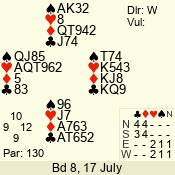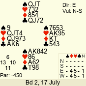 Con | Dc | Res | Score | Ld | Pairs | Rd | Tbl | 4  | S | +1 | 450 | 2 | 03 - 04 | 5 | 3 |