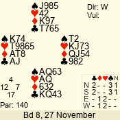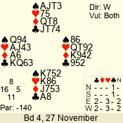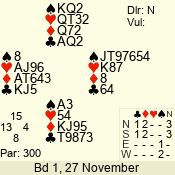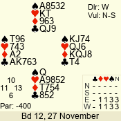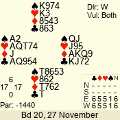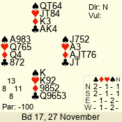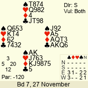 | 1 NT | W | +2 | -150 | J | 07 - 03 | 5 | 7 |