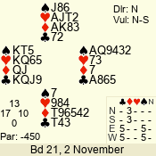 Con | Dc | Res | Score | Ld | Pairs | Rd | Tbl | 4  | N | +1 | 450 | A | 06 - 02 | 5 | 6 |