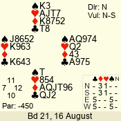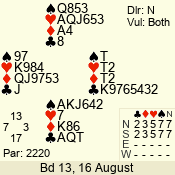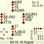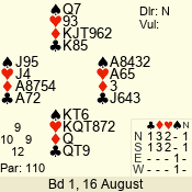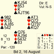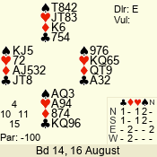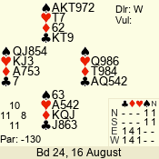 | Con | Dc | Res | Score | Ld | Pairs | Rd | Tbl |  | 3 N | E | -4 | 400 | 4  | 01 - 01 | 1 | 1 |