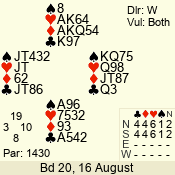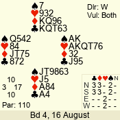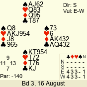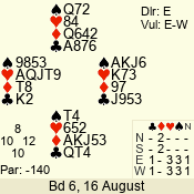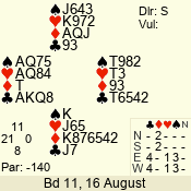 | Con | Dc | Res | Score | Ld | Pairs | Rd | Tbl |  | 3 N | N | +3 | 690 | 6  | 03 - 04 | 5 | 3 |