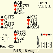 | Con | Dc | Res | Score | Ld | Pairs | Rd | Tbl |  | 3 N | E | -5 | 500 | T  | 04 - 04 | 1 | 4 |