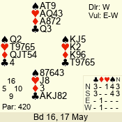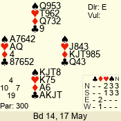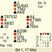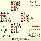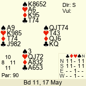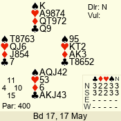 | Con | Dc | Res | Score | Ld | Pairs | Rd | Tbl | | 1 N | N | +1 | 120 | 8 | 07 - 02 | 5 | 1 |