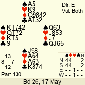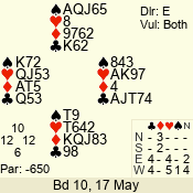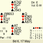 | Con | Dc | Res | Score | Ld | Pairs | Rd | Tbl | | 6 N | E | -1 | 50 | 6 | 10 - 09 | 9 | 3 |