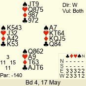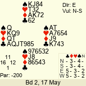 | Con | Dc | Res | Score | Ld | Pairs | Rd | Tbl | | 3 N | W | -2 | 200 | 2 | 10 - 05 | 5 | 3 |