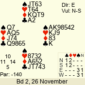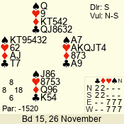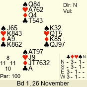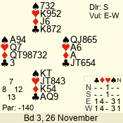 3 NT | S | +1 | 430 | J | 02 - 02 | 1 | 2 |