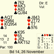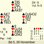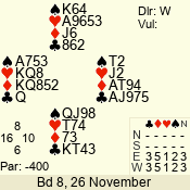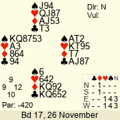 3 NT | W | +1 | -430 | 5 | 02 - 02 | 1 | 2 |
