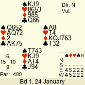 | Con | Dc | Res | Score | Ld | Pairs | Rd | Tbl | 4  | N | +1 | 450 | K | 05 - 01 | 5 | 5 |