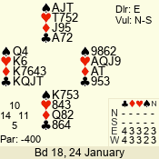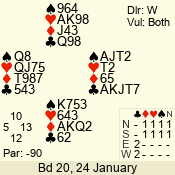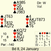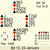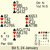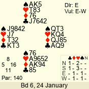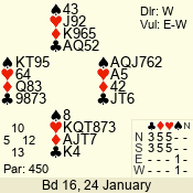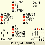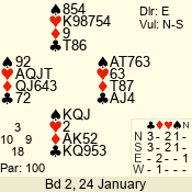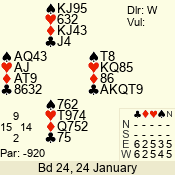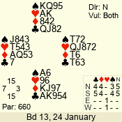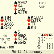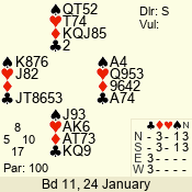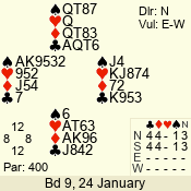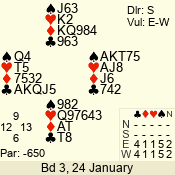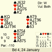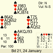 | Con | Dc | Res | Score | Ld | Pairs | Rd | Tbl | | 3 N | S | = | 400 | A | 04 - 01 | 4 | 4 |