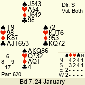 | Con | Dc | Res | Score | Ld | Pairs | Rd | Tbl | 4  | S | = | 620 | 7 | 04 - 02 | 3 | 4 |